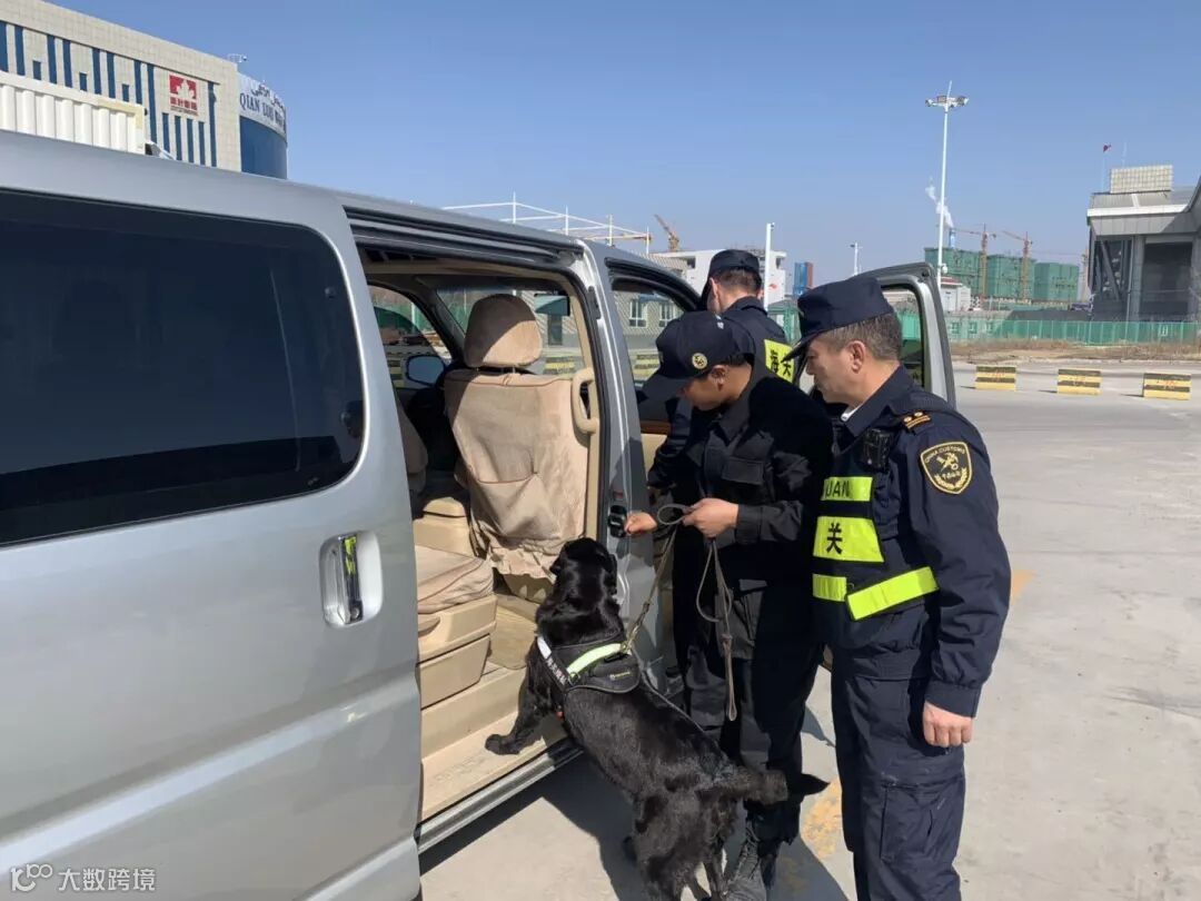 对进境运输工具、货物、物品进行“3个百分百”机检查验,同时联合缉私犬, 实现“人机犬”三位一体综合查验。