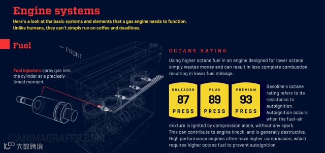 然后,火花塞适时点火,引燃可燃气形成“爆燃”,巨大的冲击力使得活塞进行运动。每分钟这样的“爆燃”会发生几百上千次。活塞的运动带动发动机曲轴飞速旋转。发动机转速的,就是每分钟内曲轴旋转的圈数。