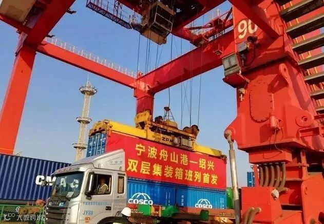 2018年12月18日上午9时,随着81986次货物列车徐徐驶出宁波舟山港北仑港站,铁路部门在宁波至绍兴间成功首发双层集装箱班列,3个多小时后,该班列将抵达绍兴皋埠站。这标志着宁绍间将形成大能力货物运输通道,为服务区域经济发展、连通海上丝绸之路,提供可靠铁路运输保障。
