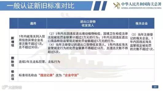 1月1日,新的《海关认证企业标准》已正式施行,海关总署公告2014年第82号同时废止。作为2018年第177号《中华人民共和国海关企业信用管理办法》的配套文件,企业认证的细节被进一步优化,更加贴合贵司的各种“参数”,详情如下: