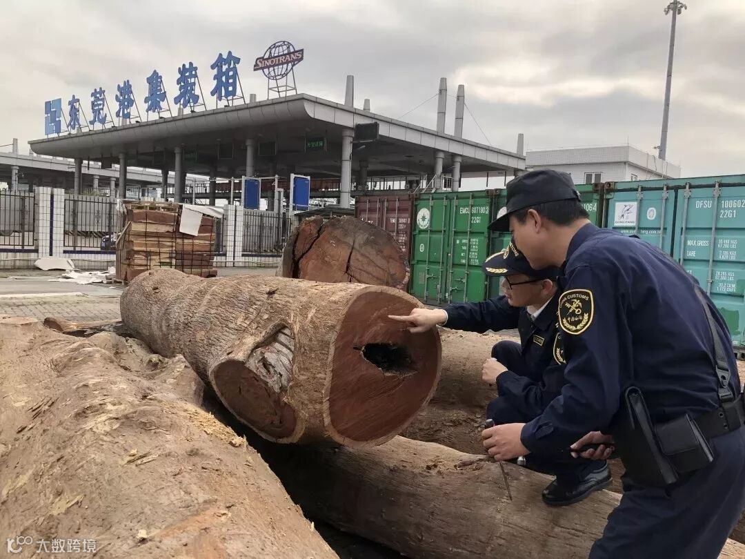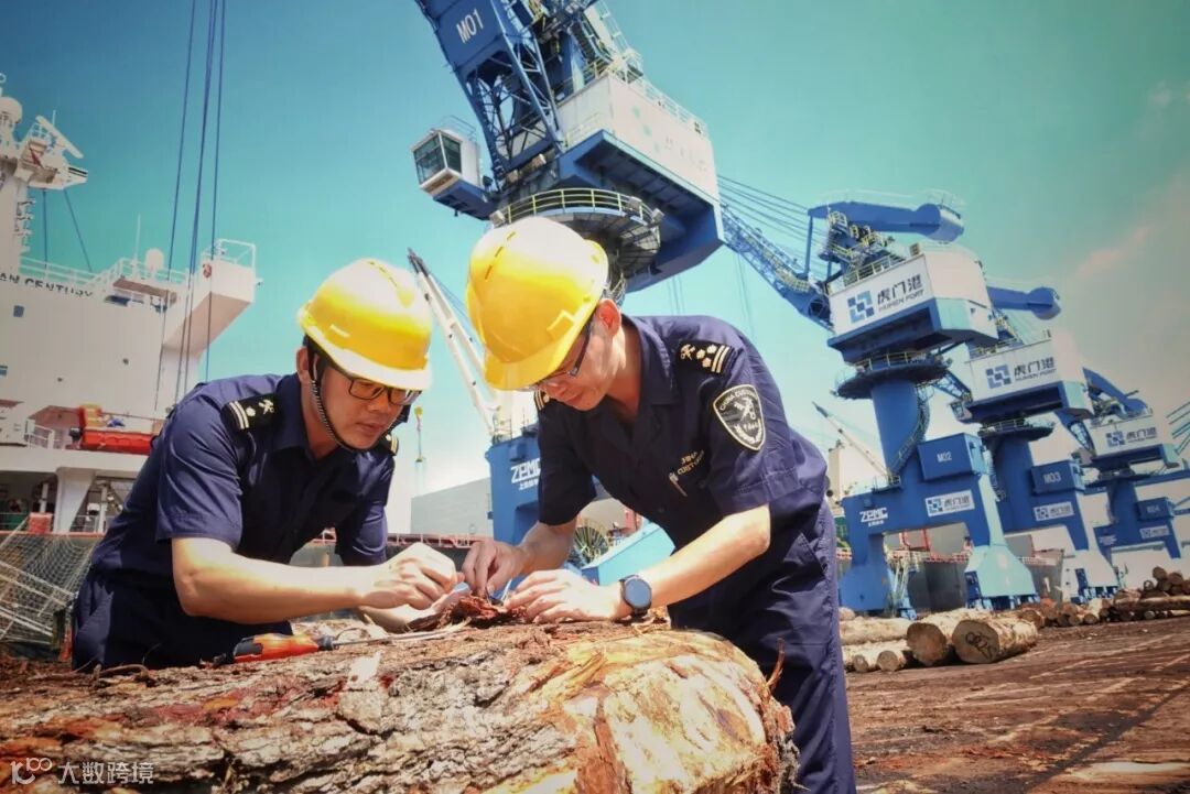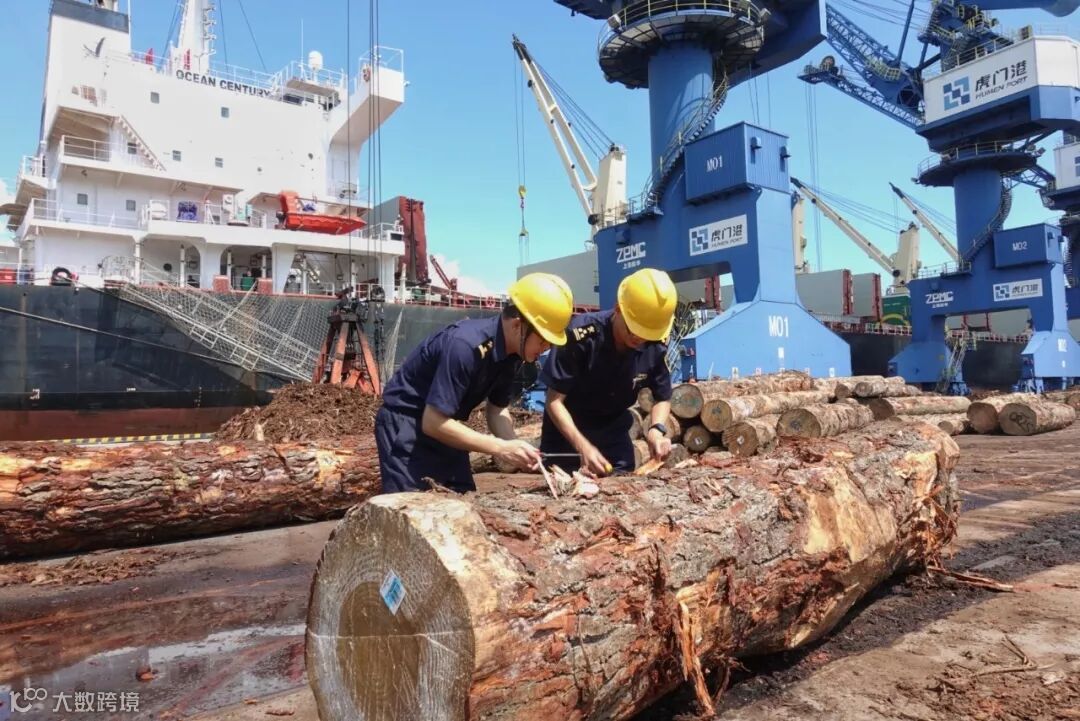 进境木材由于携带较多林木害虫等外来有害生物,为了确保国门生物安全,在口岸必须先检后卸,海关关员在查验前会检测熏蒸剂残留情况,查验中针对树皮、土壤、各类为害状、重点为害部位进行针对性检查。同时将现场发现的林木病虫等有害生物取样,送实验室做进一步鉴定。需做树种鉴定的,会截取代表性木段送实验室检验。
