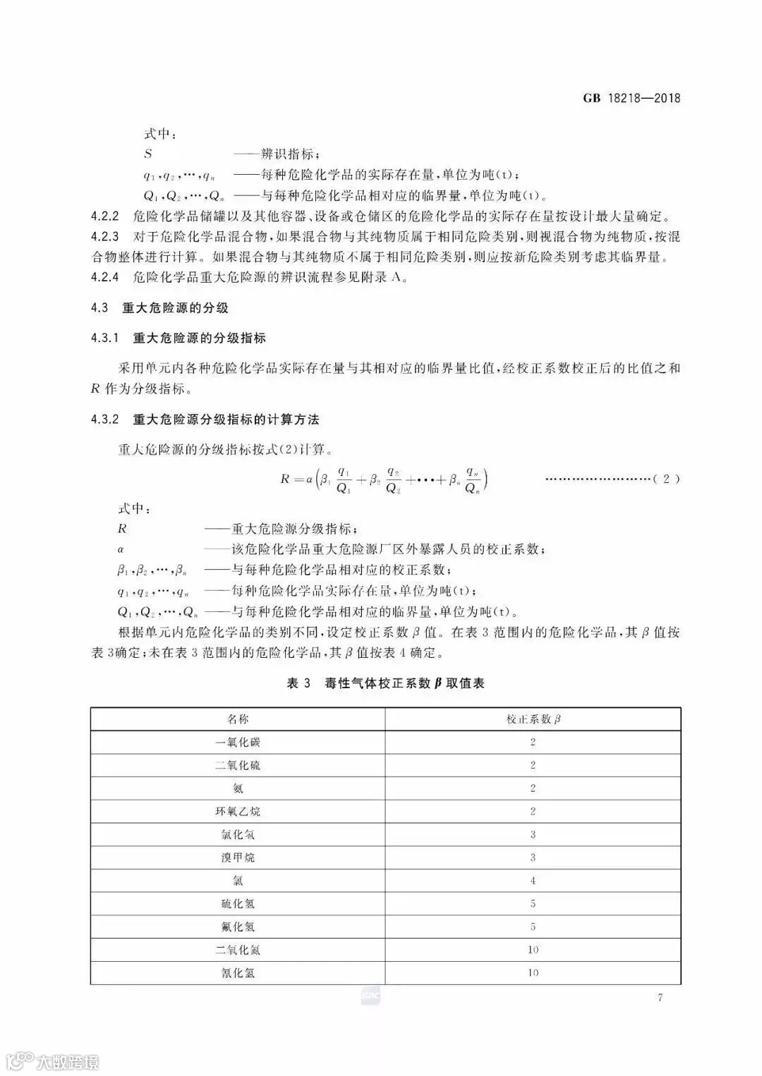 最后,新版标准补充了重大危险源分级指标、计算方法。整合了《危险化学品重大危险源监督管理暂行规定(2015修正)》中重大危险源分级方法,其中毒性气体β校正系数取值有所变动,暴露人员a校正系数、重大危险源和R值对应关系没有变化。
