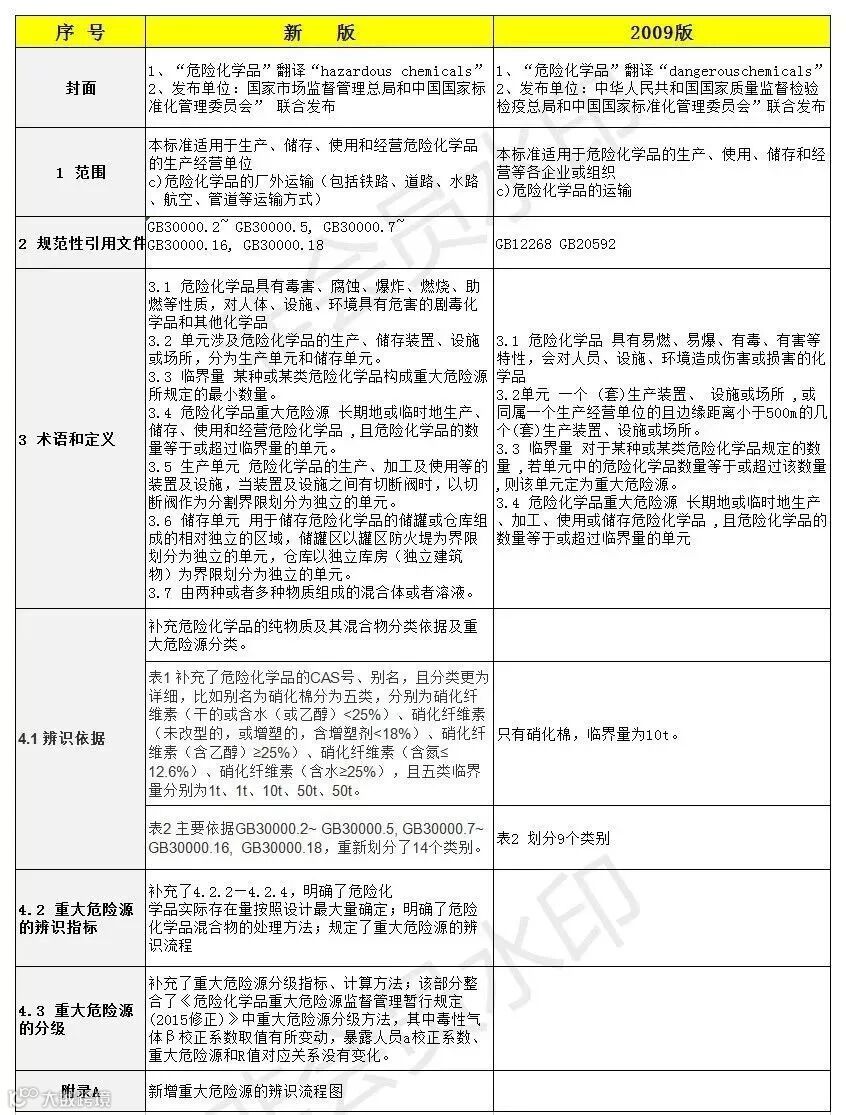 国标《新版危险化学品重大危险源辨识》(GB18218-2018)于2018年11月19日发布,将于2019年3月1日实施。该标准的发布引起行业高度关注。那么,相较于2009版,新修订的标准有哪些变化?对此,CCSA有关专家表示,新版危险化学品重大危险源辨识的修订主要集中以下几方面。
