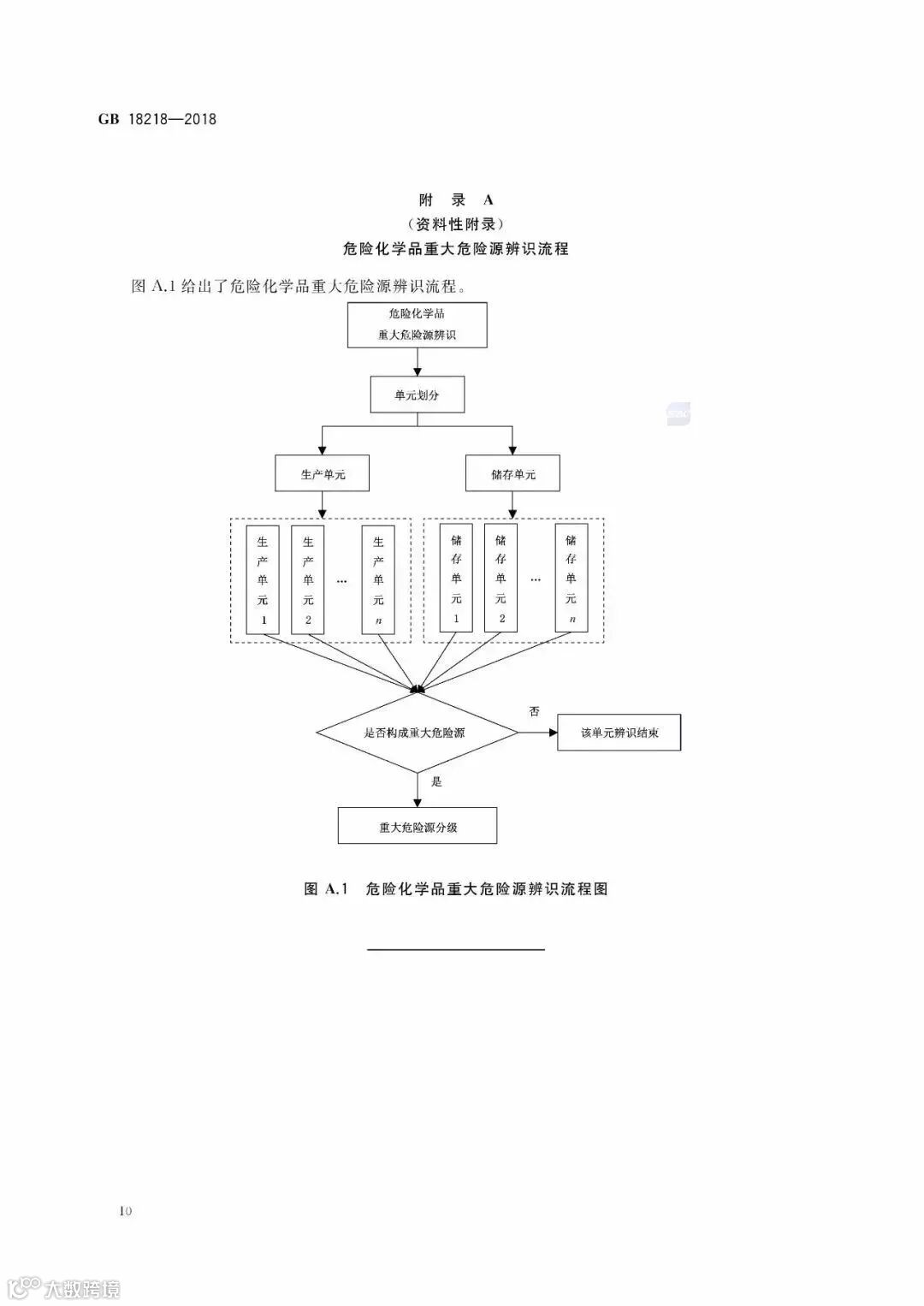 对重大危险源的分类,专家表示,老版标准对单元的划分是绝对距离范围内的装置、设施、场所,这种划分方式有其不合理之处,定义相对模糊简单。新版则解决了此问题,定义更加科学合理,可操作性增强。将重大危险源分为生产单元和储存单元分别辨识,生产单元包括生产装置和设施,以切断阀作为分割界限划分为独立的单元;储存单元包括储罐区和仓库,储罐区以罐区防火堤为界限划分为独立的单元,仓库以独立库房(独立建筑物)为界限划分为独立的单元。同时,还在附录A中给出了重大危险源辨识流程图。