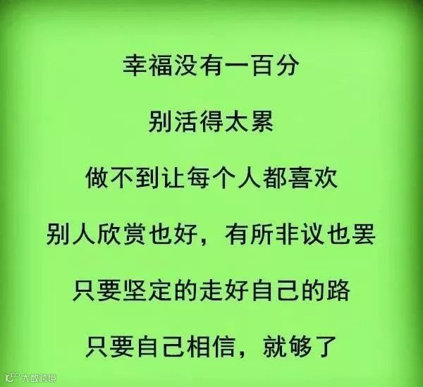 人生看似是一辈子,其实只不过为三天,昨天、今天和明天。沉溺昨天的人,最糊涂,挥霍现在的人,最愚蠢,畏惧明天的人,最懦弱。人生,一边是拿起,一边是放下,生活,一边是忘记,一边是珍惜,要想活好这辈子,必须做到三件事:一、把不好全留在昨天,二、把希望都留给明天,三、把努力都用在今天。任何人,都有遗憾,任何事,都有不顺。最重要的其实不是结果,而是参与的过程。忘记悲伤的过往,珍惜眼前的一切,和过去告别,从此以后,珍惜所有,不留下遗憾,活好当下,不辜负人生!