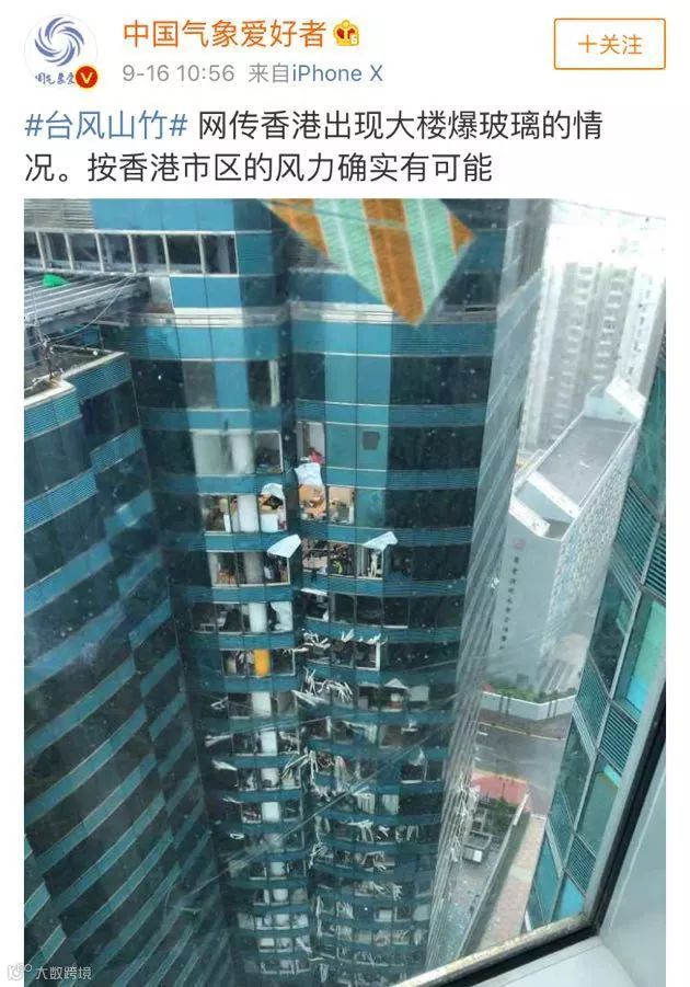 还有香港的朋友反映,“山竹”影响下,维港内市区楼宇间场景如同灾难片,大家一起感受下吧……