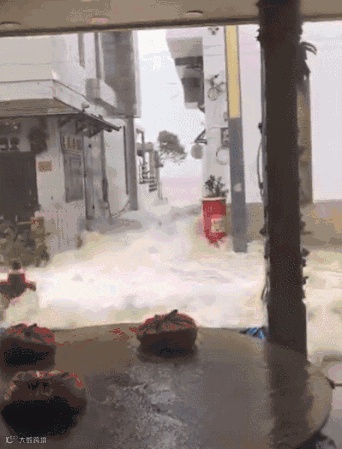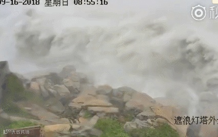 △ 汕尾遮浪灯塔摄像头拍摄到的巨浪翻滚