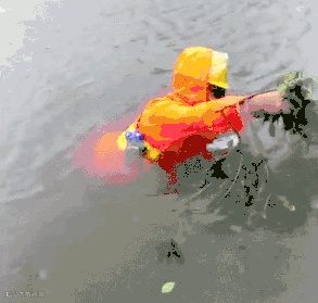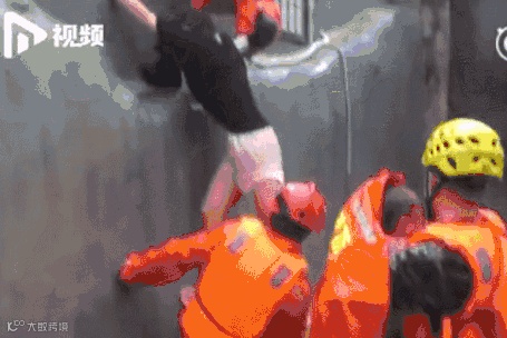 由于风力较大,大家手拉手两分钟救出被困人员。