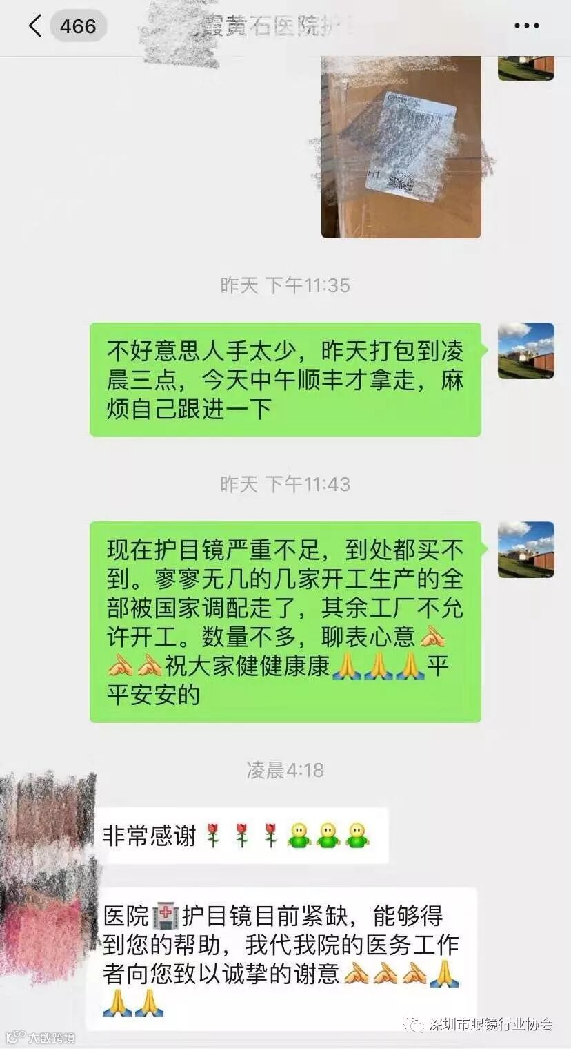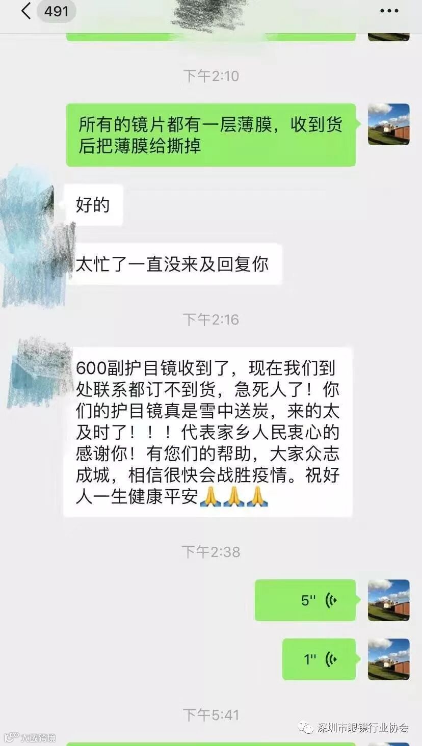 党总说,她当初做这件事也是受到儿子的提醒,之前大家的关注都是在口罩和防护服,但是有专家组的成员就是通过眼睛感染上了病毒。她认为自己也是做眼镜的,自己熟悉这个行业,可以用专业的知识给疫区的医护人员提供帮助。据她讲述,采购的过程也是一波三折,因为自己是做电镀的,对护目镜不太了解,咨询了很多朋友,甚至托朋友介绍资源,再经过比较学习,期间也学到了很多护目镜的相关知识。由于正值春节假期,很多工厂也没有生产眼镜,资源有限,很难筹集到合适的护目镜资源。党总笑道:“她已经记不清总共捐助了多少护目镜了,每次都是筹集到一点就捐一点,国难当头,也是尽力而为。”大爱无疆,尽心慈善,千色眼镜的点滴付出是众多在深圳的眼镜企业的缩影。