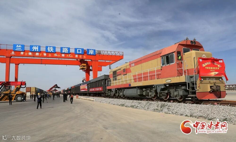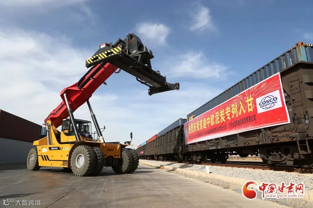 10月9日,首趟1200吨中欧泥炭班列进甘肃接车仪式在兰州中川北站举行。