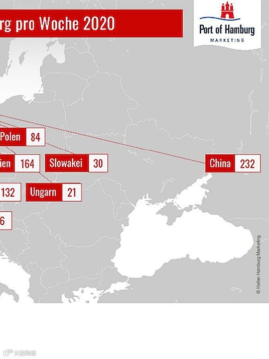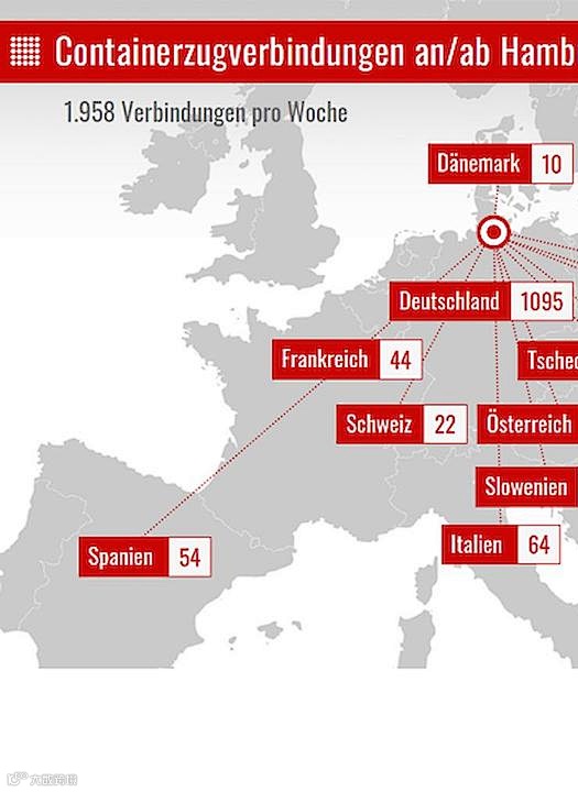 除中国外,与捷克共和国、奥地利和波兰的集装箱列车连接也是国外最重要的目的地之一。德国海港-腹地铁路运输中最重要的联邦州是巴伐利亚州、巴登-符腾堡州、萨克森州、黑森州和北莱茵-威斯特法伦州。