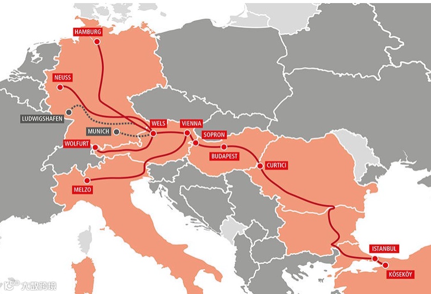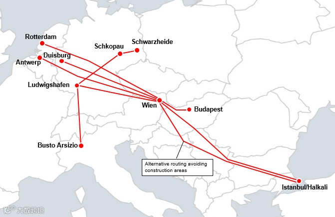 图为:Hupac到土耳其的路线