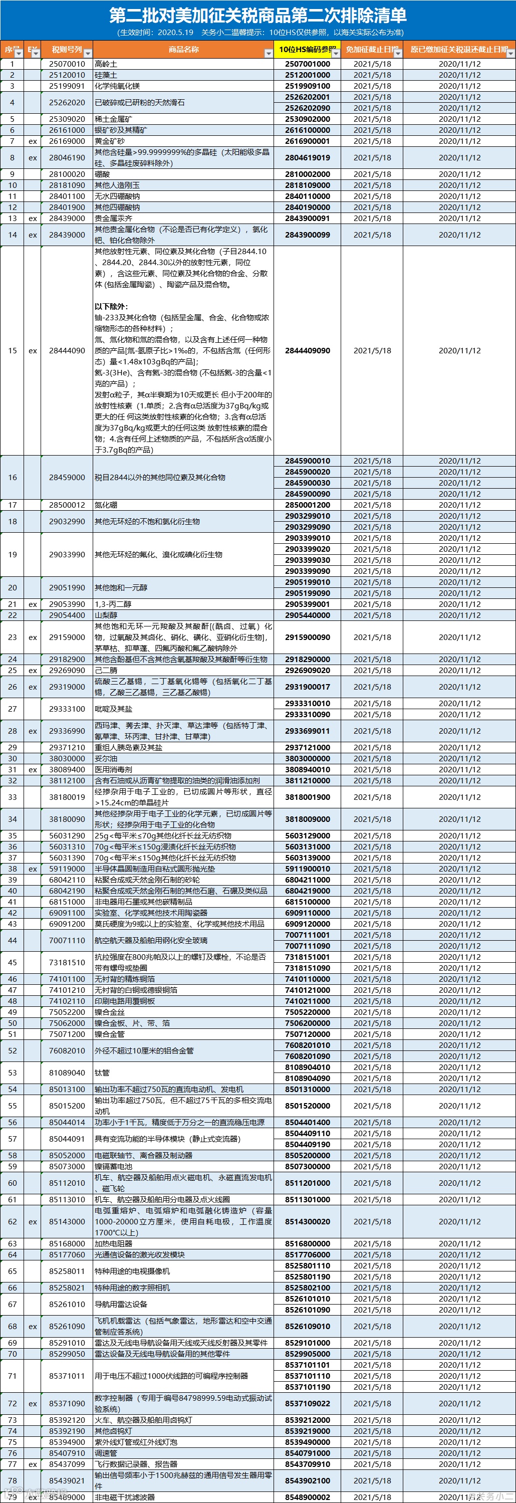 对美加征关税第二批第二次排除清单有效期5月18日到期