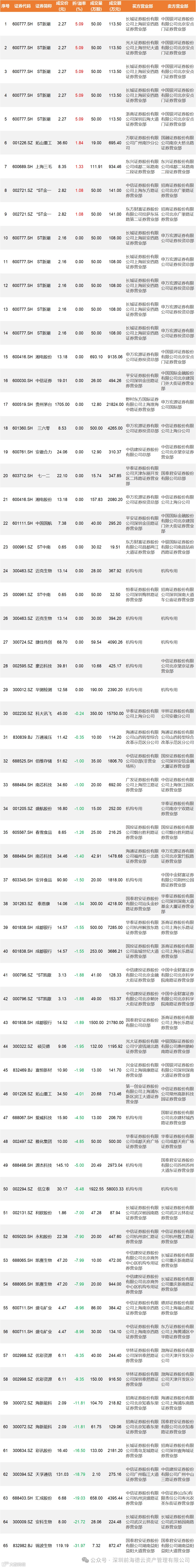 每日大宗交易数据统计