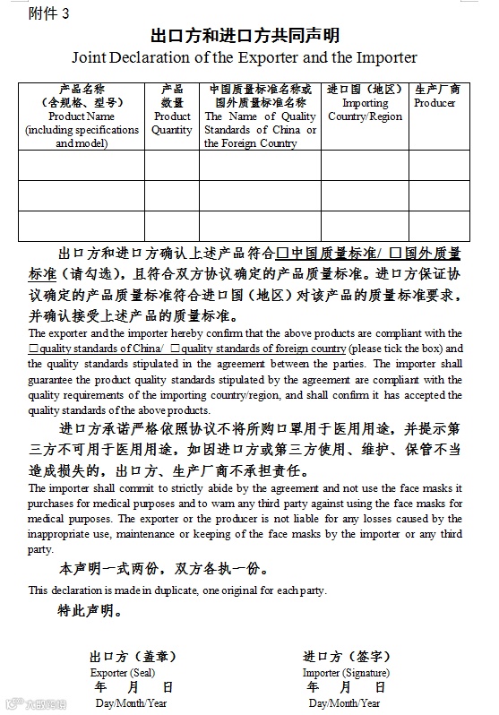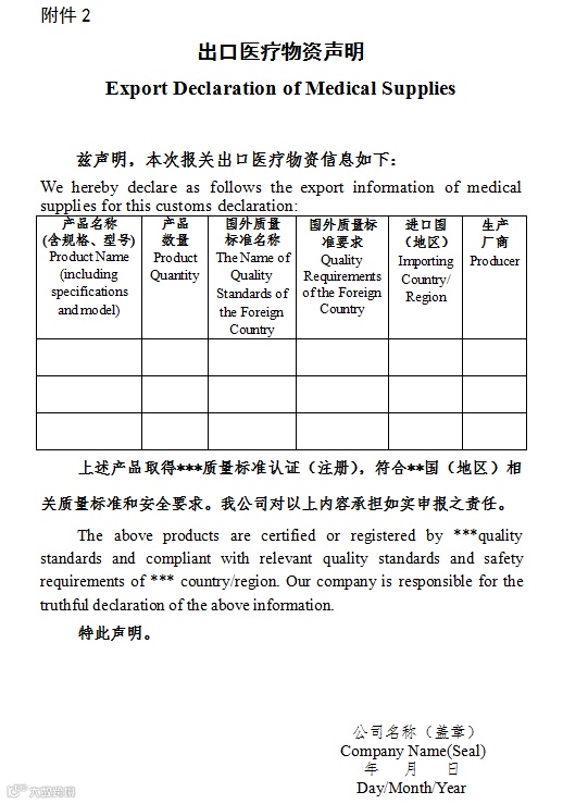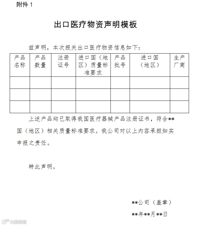 (1)提交出口医疗物资声明(中英文)【附件2】;