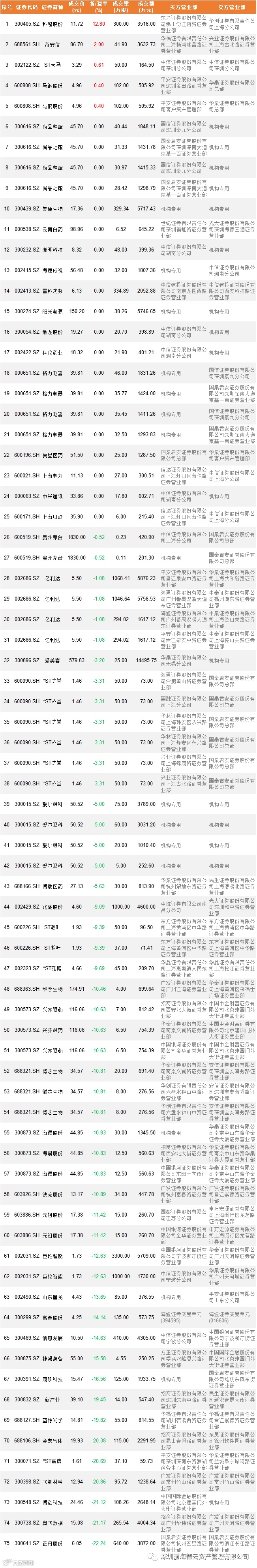 总成交笔数:75笔 交易股票数:47支