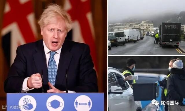 自英国宣布发现新冠变种病毒后,多国暂停英国海陆空交通入境,英国港口郡肯特郡出现拥堵,数千辆卡车等待通过海峡。