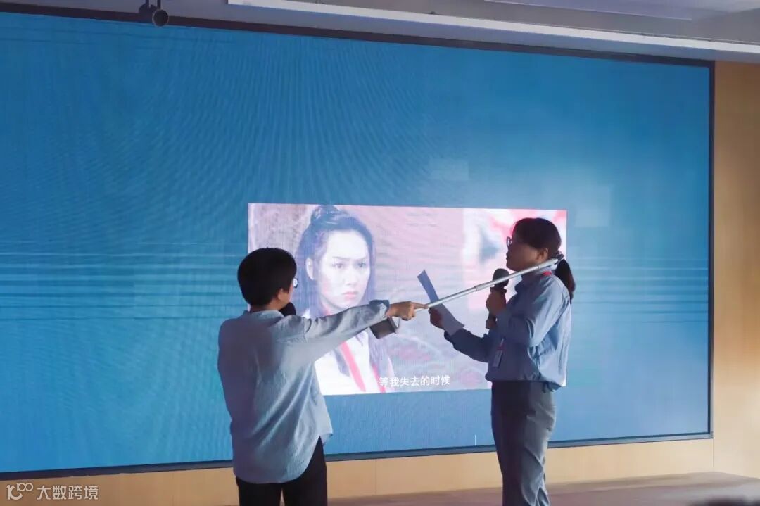 声临其境环节,每组派代表根据书籍情景进行配音,五小组通过语言、道具等精彩演绎经典电影《大话西游》片段,学习“旧书不厌百回读,熟读深思子自知”其中的深刻用意。