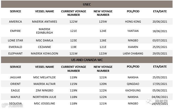 2M联盟合作伙伴地中海航运也补充称,当前的市场挑战影响了港口运营,导致港口拥堵和船期延误现象加剧,故以下航线航次进行调整。