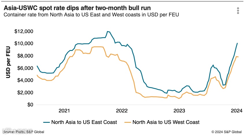 货代公司 CV International 负责定价和采购的副总裁 Rachel Shames 说,新增运力似乎对运价产生了影响,一些承运商已经开始对西海岸的'特定服务'报出 7000 美元左右的费率。