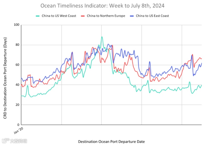 · 中国到美国东海岸的 OTI 上升至 62 天