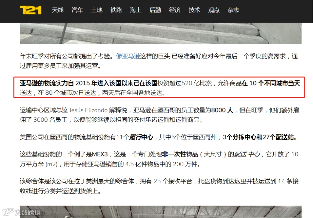 在墨西哥市场,亚马逊就付出了诸多心血,以物流为靶心成功扎根于此地。