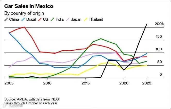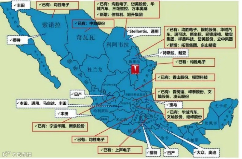 中国汽车零部件供应商不仅跟着特斯拉去墨西哥,而且,整车企业在墨西哥市场取得了显著的市场份额。
