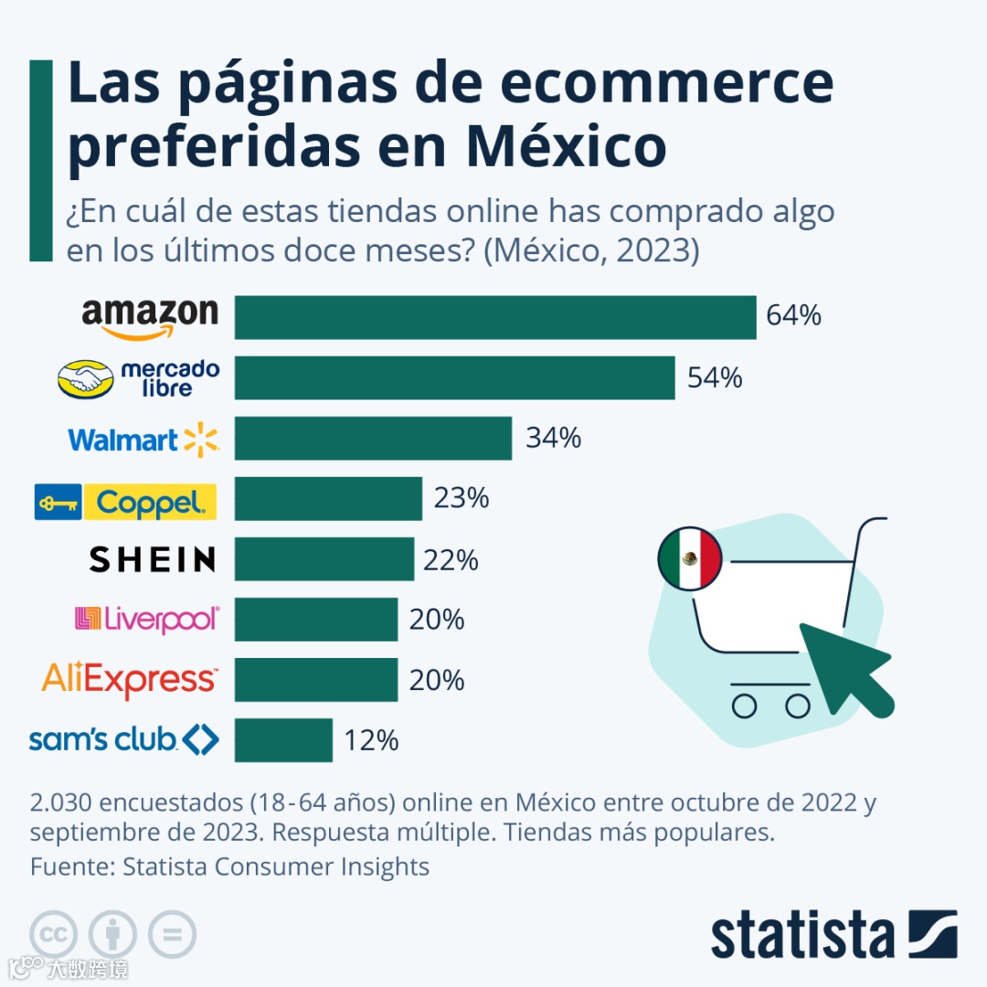 墨西哥2023最受欢迎电商平台榜单 图源:Statista