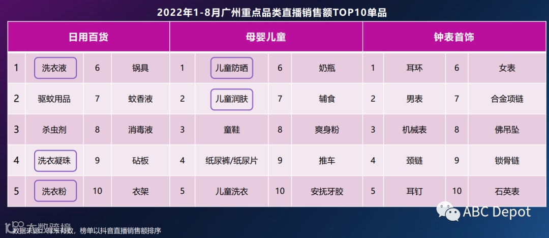 从广东省抖音广告投放量TOP20的直播商家中发现,洗护、数码家电和服饰鞋包三大品类商家的投流力度较大。