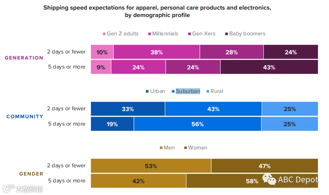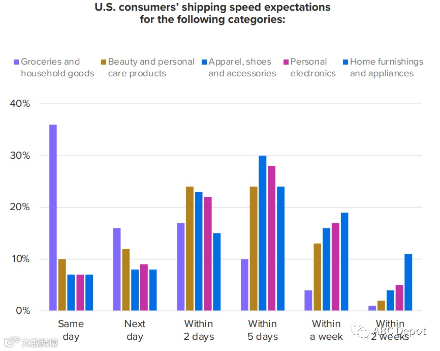 为了实现在线购物的持续增长,美国零售商逐步改善交付的服务。对美国消费者来说,提货的方便性比交货的速度更重要,他们“在线购买,店内取货”服务是为了方便而不是交付速度,大多数购物者不希望他们的在线订单在五天内到货。