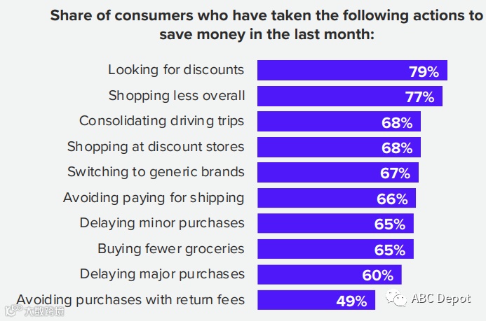 85%的美国成年人(85%)表示,通货膨胀加剧对他们的购物方式产生了影响。人们正在寻找优惠、折扣和优惠券,或者只是总体上少购物。这对零售商来说是个坏消息,他们也面临着通货膨胀压力,必须在竞争性折扣与更高库存和劳动力成本的现实之间取得平衡。消费者报告推迟购买家居用品和电子产品,转而购买价格较低的杂货。购物者购买的服装和个人护理用品也越来越少。