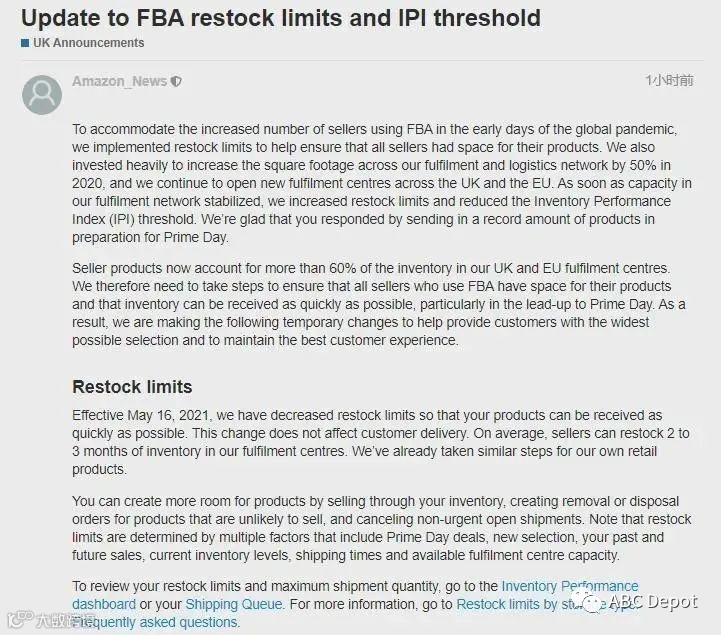 5月16日起,降低FBA补货限制,本来是一件好事,但实际上有很多限制条件。