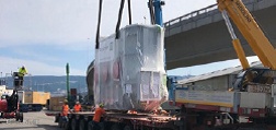 The main challenge was entering the area with only 4,72 meters of available height. We use a NICOLAS MDE multiaxial trailer with a minimum height allowance of 0.75 meter.