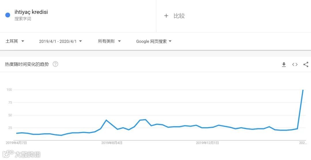 另一方面,由于疫情导致的失业或停工,导致一部分人失去了部分或全部收入,人们开始在网上寻求金融平台或是银行的帮助。在土耳其,人们对 “ ihtiyaç kredisi 银行贷款” 的搜索飙升;