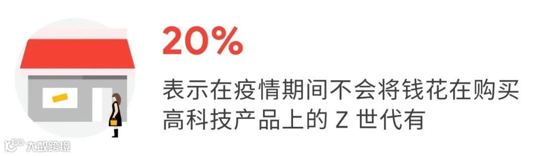 不同的年龄群体对于延迟消费的表现也各不相同,值得注意的是,被成为“ Z 世代” 的年轻群体 (15 岁至 25 岁)因为目前收入相对较低,他们会暂停或减少各方面的消费,20% 的 Z 世代表示在疫情期间不会将钱花在购买高科技产品上。