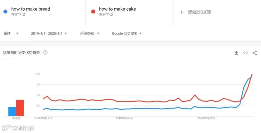 从 Google Trends 的趋势图我们可以看出,人们有了更多时间在家自己做美食,关于 “ how to make bread 如何制作面包” 和 “ how to make cake 如何制作蛋糕” 的搜索量自今年 3 月份开始上升了约 300%。