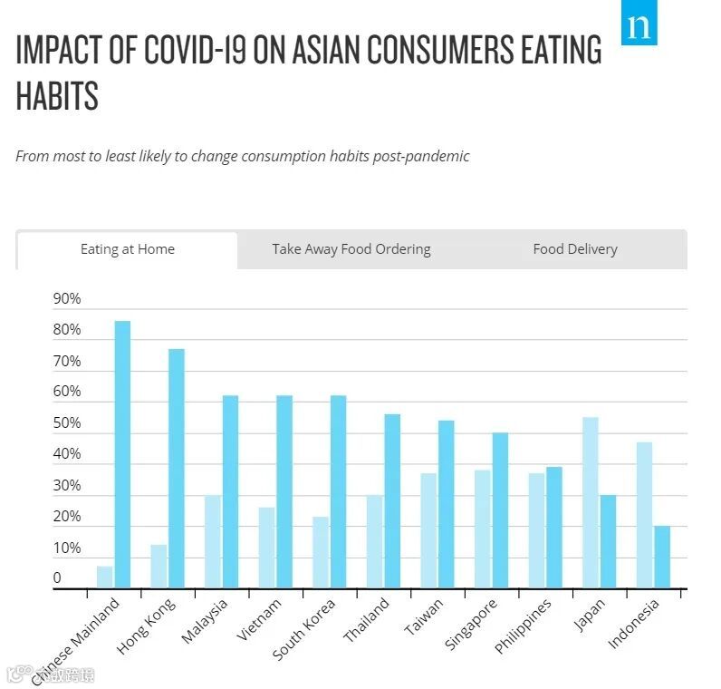 在尼尔森关于亚洲消费者疫情期间的行为报告中,我们发现大陆消费者在家吃饭的趋势增长了超过 80%,香港地区的消费者紧随其后,增长超过了 70%,这也带动了烹饪设备的消费。