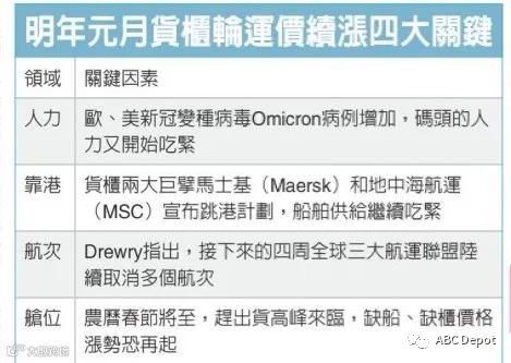随着Omicron病例的增加,不少国家对运输工人采取加强版检疫措施,因人力告急而形成供应链危机;加上农历春节前赶出货潮将至,预计1月运价将压不住,恐有暴冲疑虑。