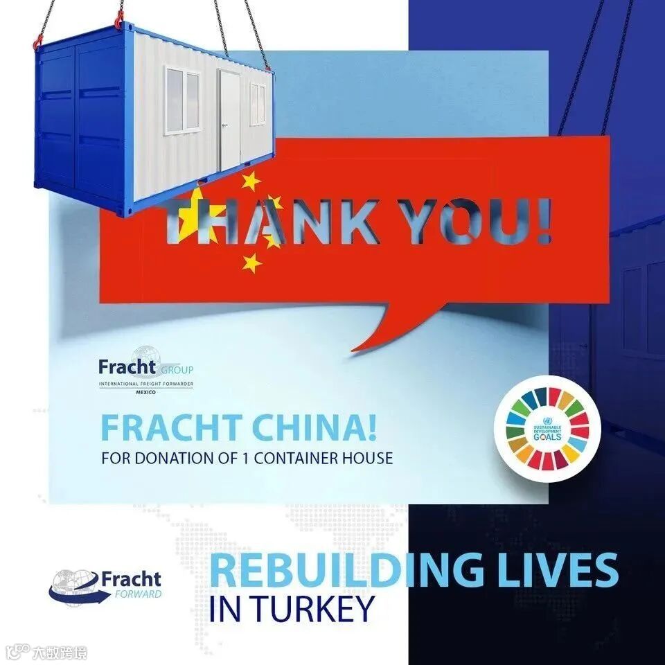 Fracht China have donated one container house which is helping families in Turkey on home rebuilding, embodying global social responsibility, spreading love and hope.