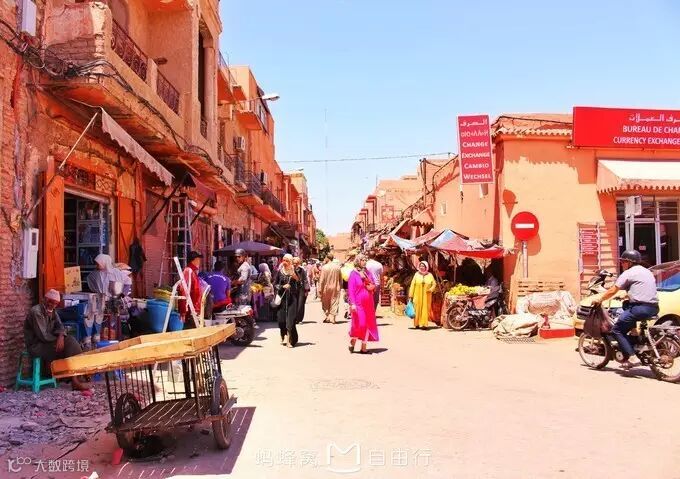 长达十几公里的城墙将马拉喀什分割成两个不同的世界。墙外,是一个时髦的现代都市,墙内,是千年古城。而马拉喀什人每日穿梭在城墙内外,就如往来于千年之间。老城的城墙、民居等都是褐红色的;而城墙外的新城,建筑大多也是显眼的褐红色,在晨光或夕阳下,整个马拉喀什就是一片红色的海洋。