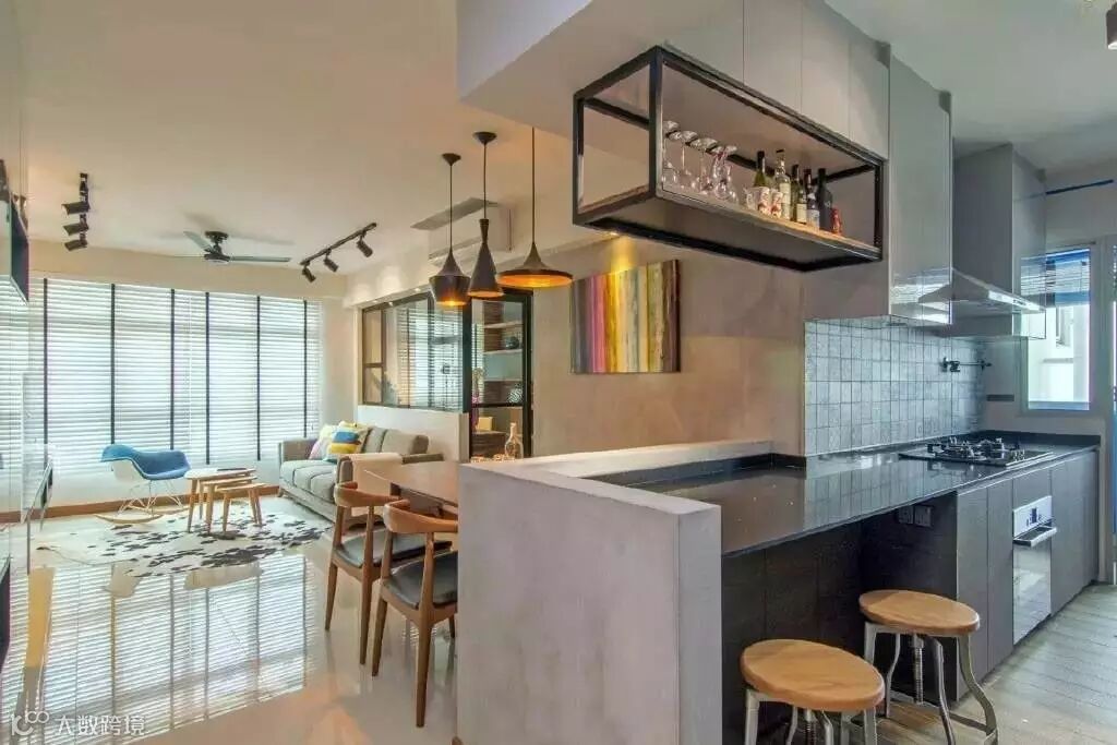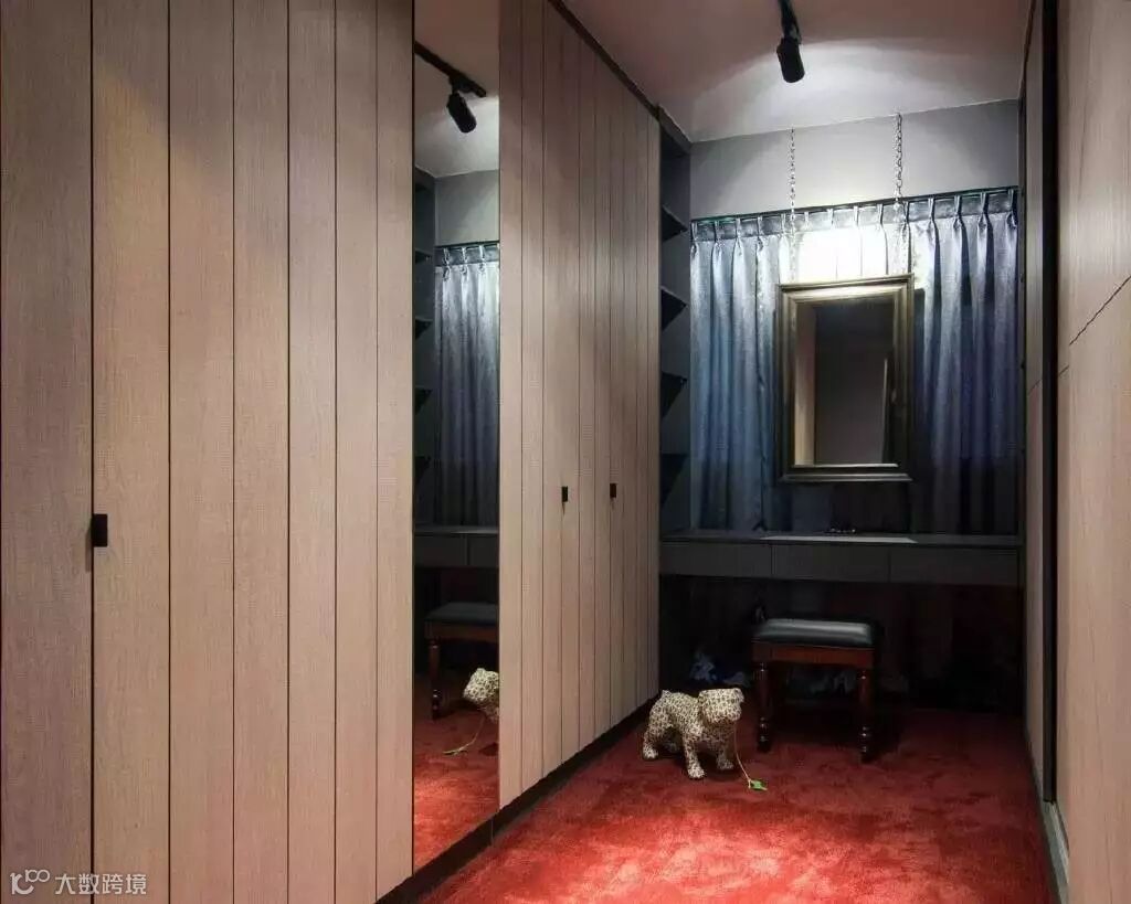 木质板材,给这个主色调为灰黑色的空间带来了一些温暖宜人的感觉