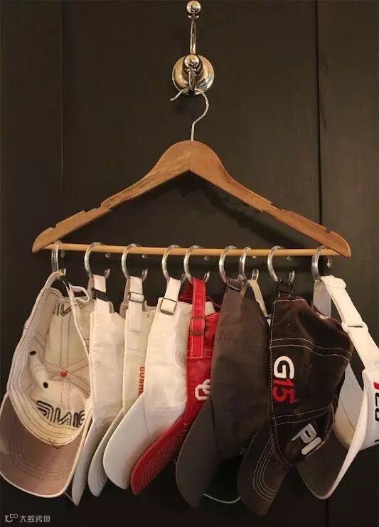 帽子也可以和围巾一样,用一个衣架搞定,不过需要多添几个O型环,这样看起来运动帽是不是像列队排好的卫兵?