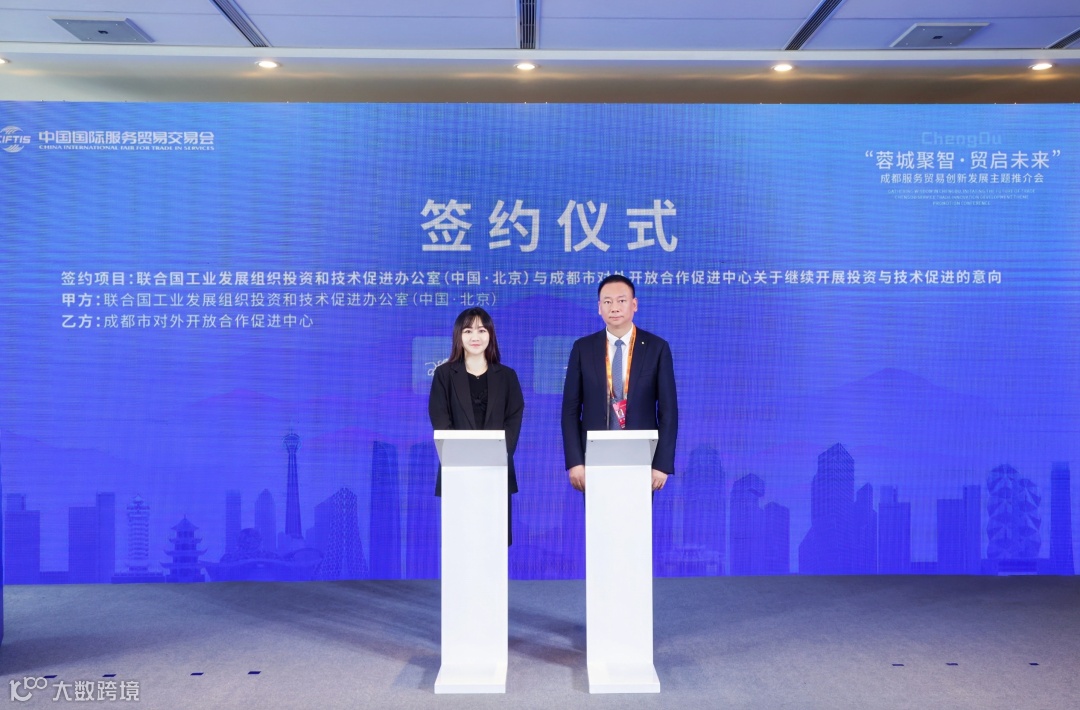 2024年中国国际服务贸易交易会期间,“蓉城聚智·贸启未来”成都服务贸易创新发展主题推介会于9月13日在京举行,活动由成都市商务局主办、联合国工业发展组织投资和技术促进办公室(中国·北京,ITPO Beijing)等单位支持。