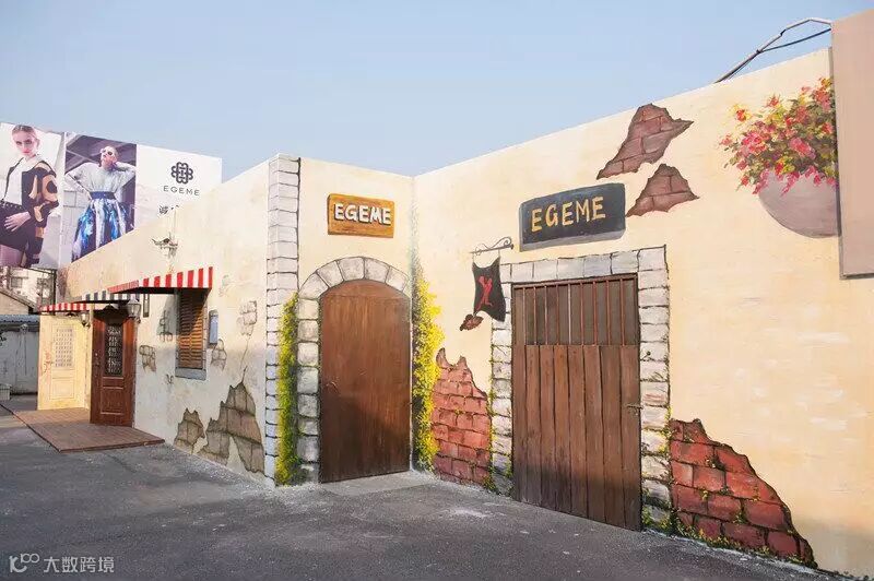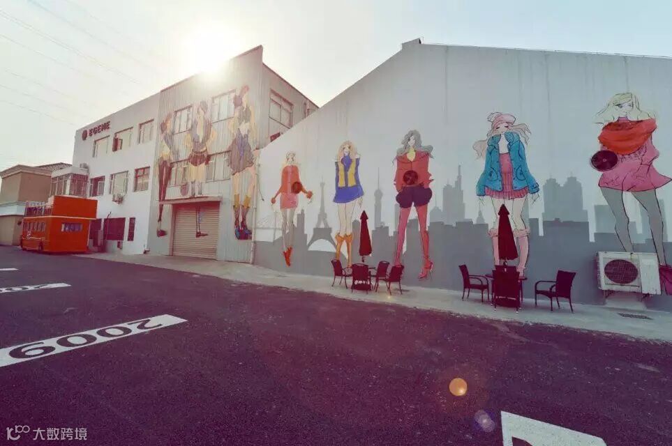 店铺后面便是佰依集团工厂,映入眼帘的大面积3D涂鸦,看着真让人眼前一亮!