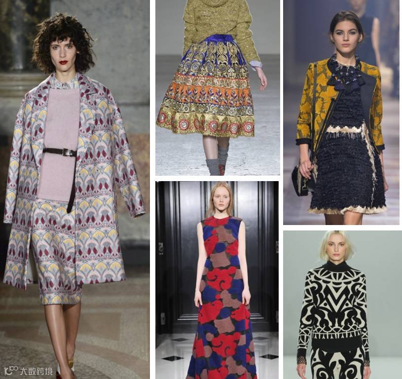 双色锦缎印花是2015秋冬季的重点印花趋势,代表着印花图案向着复古感方向发展的趋势。
