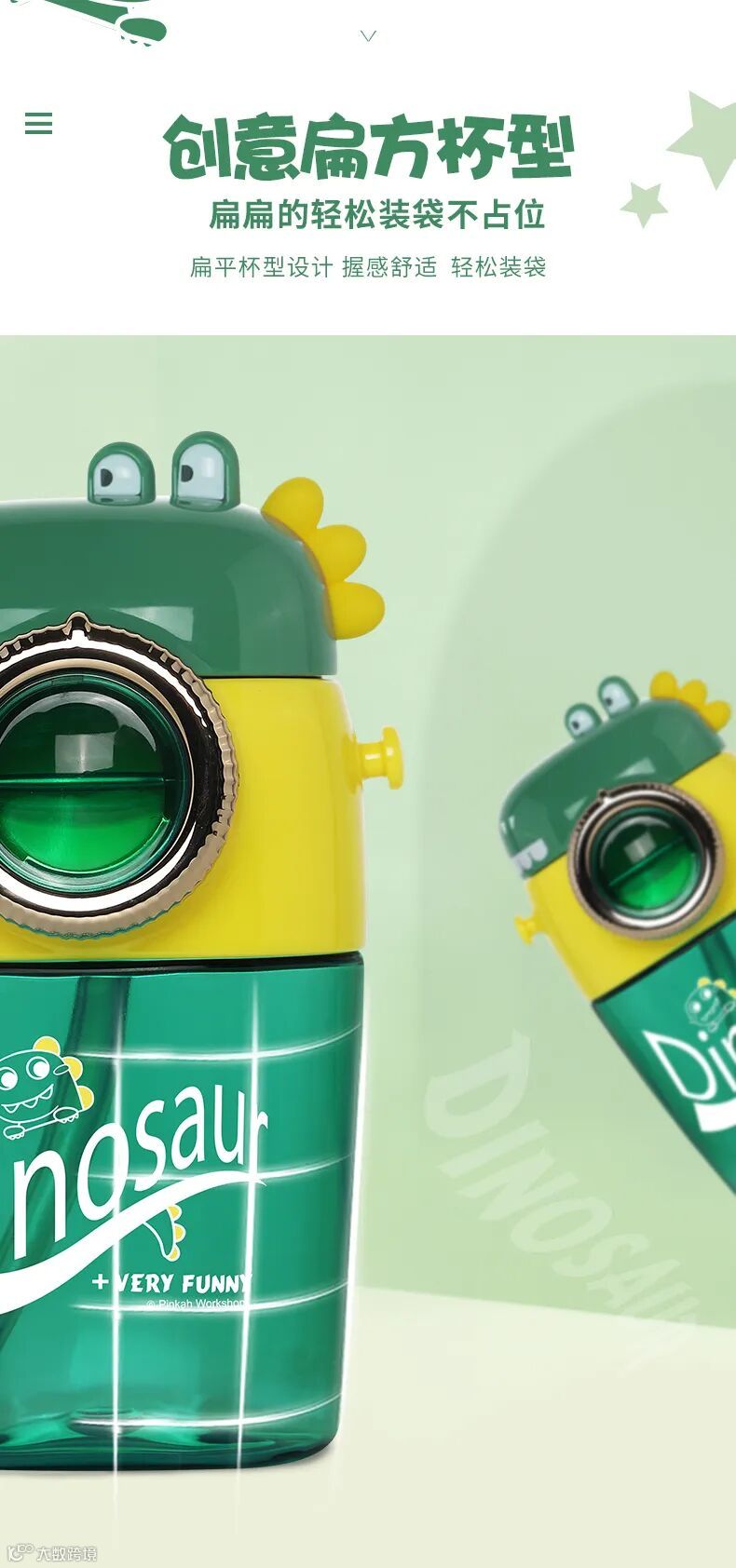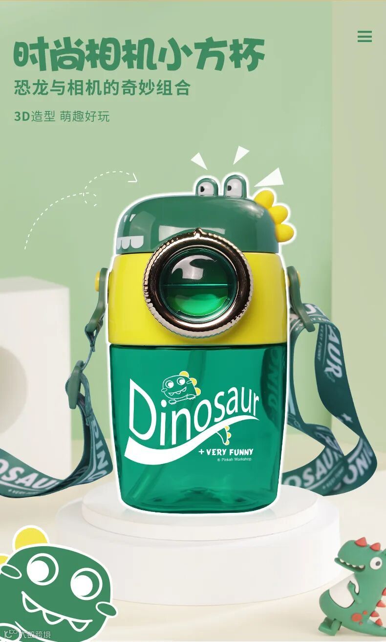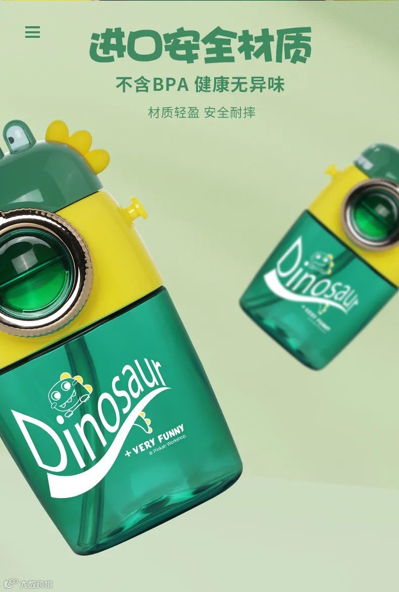 恐龙扁形吸管水壶