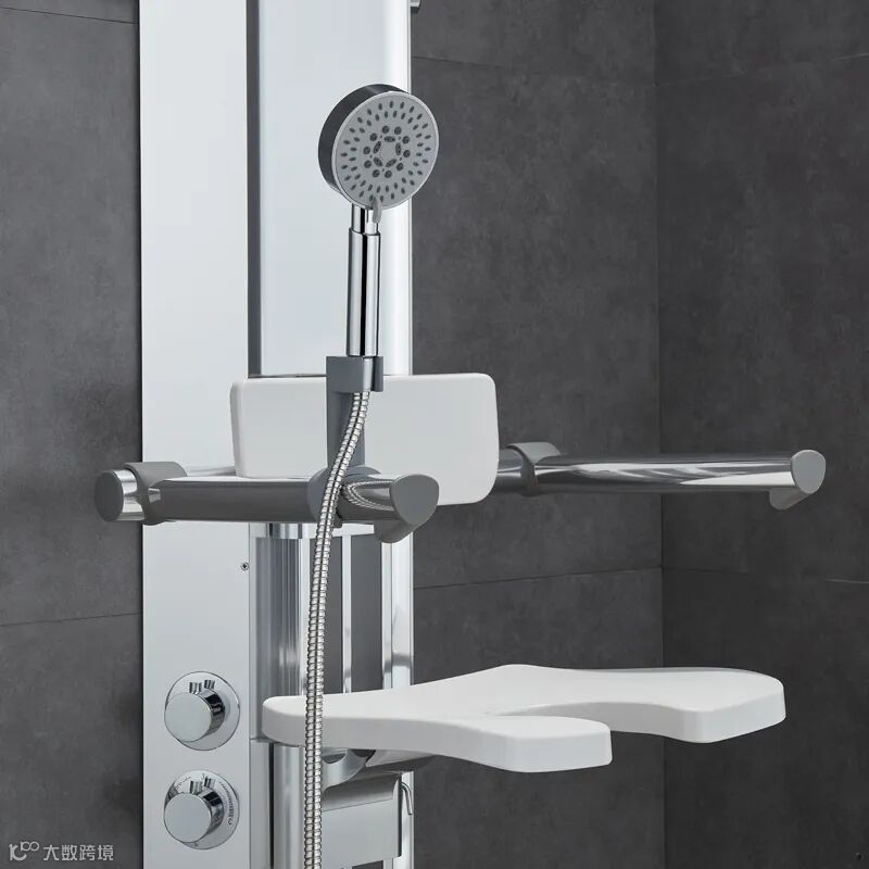 该产品方便将旧浴室改造成老年人使用。淋浴设备接连原有的龙头接口即可,安装简单又美观。坐式浴凳和扶手均可上下调节高度至最舒适的状态,可折叠收纳节省空间。顶洒或伸缩式顶喷出水方式通过浴座旁侧的龙头切换,使用顶洒可解放双手,使用伸缩式顶喷方便全方位洗浴。龙头带恒温,可调温度,可锁定理想温度,防止忽冷忽热。