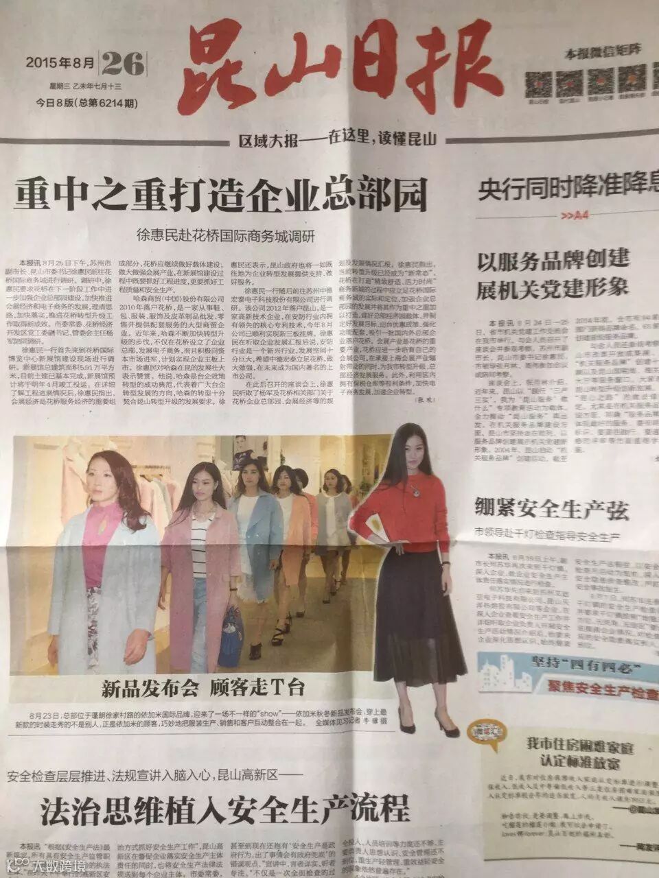 △ “EGEME依加米蓬朗旗舰店秋冬新品VIP品鉴会”轰动昆山,登上昆山日报头条!