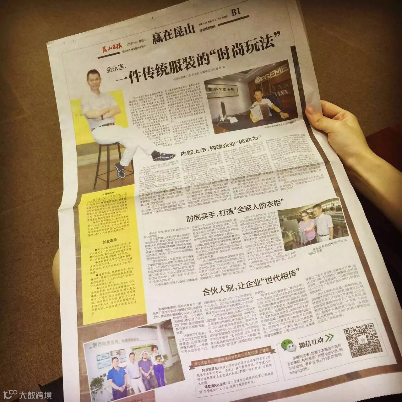 佰依集团是一家普通的服装企业,董事长金永连却在短短的一两年时间内,让其迸发出全新的生命力:国内股权架构专家进驻,独创企业内部上市系统,解决了员工动力问题;多名海归加盟,打造依加米国际品牌联盟直销店,向“全家人的衣柜”迈进;采用合伙人制,引进国际知名创意设计团队,延伸文化创意产业。甚至金永连爷爷当年的“阿宝生走油肉”,也在发扬光大,要打造成为昆山最具特色的美食。
