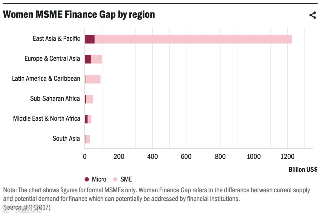 Deeply-rooted structural gender inequalities result in unequal access to infrastructure, productive resources and procurement opportunities for women entrepreneurs. Discriminatory property and inheritance laws inhibit women’s access to credit and financial products and services. In 2019, 115 out of 190 economies had at least one gender-based legal restriction on women’s employment and entrepreneurship in place. The finance gap among micro-, small and medium enterprises (MSMEs) reflects this phenomenon; despite their smaller average size, women-owned businesses account for a disproportionate share of the finance gap. Women entrepreneurs are also disproportionately represented at the micro, small and medium level, and women-owned businesses tend to be concentrated in sectors with lower profit margins than men.